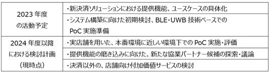 本プロジェクトでは、新たな決済ソリューションとして、BLEやUWB等の通信技術等を用いることで、決済時のスマホ操作にかかる消費者側の手間・負担が軽減された新たな決済体験の構築を目指します。