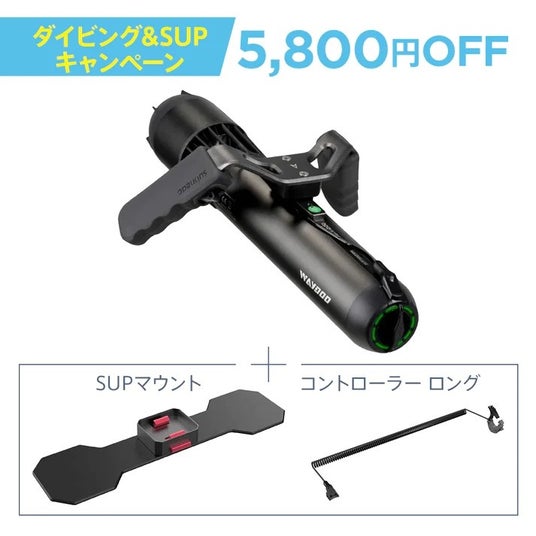 タンクやSUPに取付OK!軽量で最大60分駆動の人気水中スクーターセットの期間限定キャンペーン
