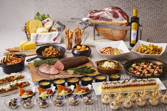 温製料理には、定番人気の和牛ローストビーフにもチーズソースをご用意したほか、パルメザンチーズをご自身で削ってかけてお楽しみいただけるシーフードチーズリゾットや、韓国料理のチーズタッカルビなどをご提供いたします。デザートコーナーには、シュー生地に生ハムとチーズをサンドした生ハムとチーズのグジェールや、パルメザンチーズをたっぷり使用したチーズスティックパイなど、チーズ好きにはたまらないメニューがラインナップ。生ハムとチーズが奏でる美味しさを豊富なメニューでぜひご堪能ください。