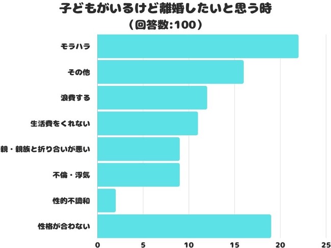 子どもがいるけど離婚したいと思う時をアンケートにて調査したところ、1位は「モラハラ」でした。