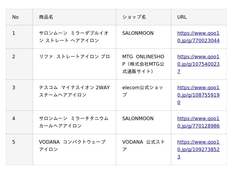 Qoo10「ヘアケア家電」販売数ランキング