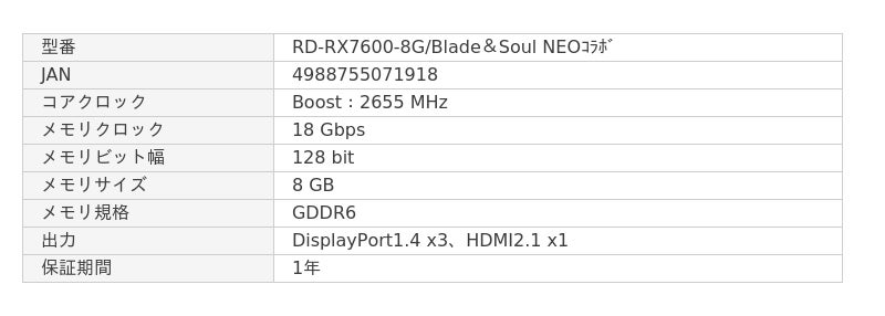 玄人志向『RD-RX7600-8G/Blade&Soul NEOコラホ゛』