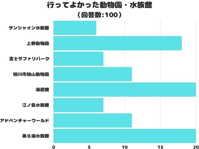 行ってよかった動物園・水族館をアンケートにて調査したところ、1位は「美ら海水族館」「海遊館」でした。