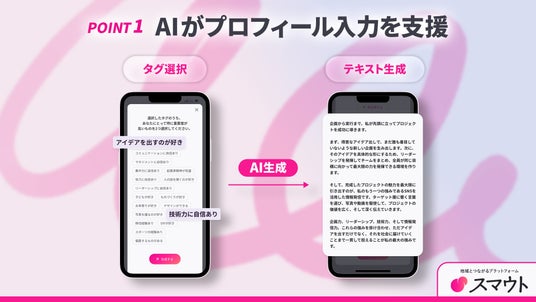 従来は入力負荷の高さから十分な情報が記載されにくいという課題がありましたが、AIのサポートによりプロフィール作成のハードルを下げ、情報量と内容の充実を図ります。