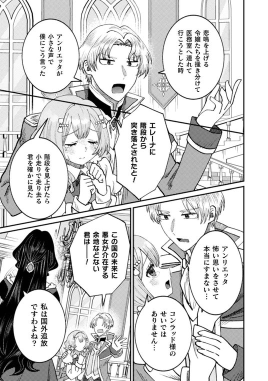 コンラッド王子は卒業パーティの場で婚約者エレーナを「悪女」と断罪し婚約破棄を宣言する。