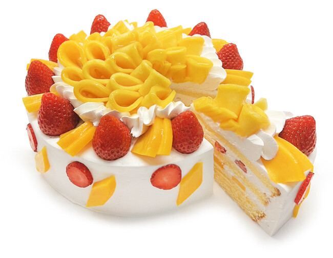 芳醇な香りでなめらかな食感のマンゴーと、甘酸っぱいいちごをあわせて美しく飾り付けました。人気のフルーツの組み合わせを楽しめるショートケーキです。