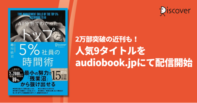 株式会社ディスカヴァー・トゥエンティワン(本社:東京都千代田区、取締役社長:谷口奈緒美)は2022年7月に、『AI分析でわかった トップ5%社員の時間術』他8点のオーディオブックをaudiobook.jpで配信開始しました。