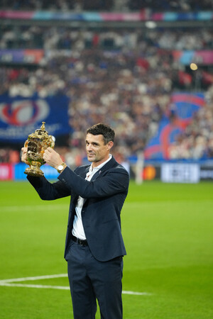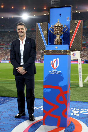 ダン・カーターが「ラグビーワールドカップ2023フランス大会」の開幕戦にて、ルイ・ヴィトンのトロフィートランクに収められた「ウェブ・エリス・カップ」を披露しました。