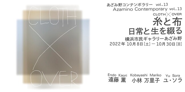 横浜市民ギャラリーあざみ野(横浜市青葉区)では、2022年10月8日(土)~10月30日(日)の22日間、企画展「あざみ野コンテンポラリーvol.13 CLOTH(クロス)×OVER(オーバー) 糸と布 日常と生を綴る」を開催します。