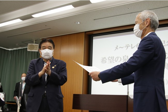 メ~テレからは、修繕工事の実作業を担当した「塗魂インターナショナル」池田事務局長へ感謝状を贈呈。