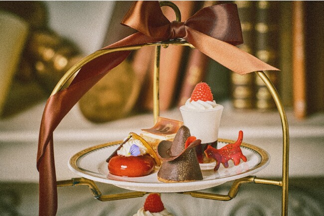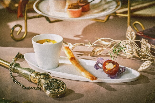 魔法の杖をイメージしたキノコのスティック、温かいパンプキンのスープなど秋の味覚がふんだんに詰まった軽食と三段のスイーツスタンドがセットになった「スタンダード」 (4,500円)、魔法の世界へと誘う招待状があしらわれたチェリータルトのアシェットデセール付き「プレミアム」(5,000円)の2つのプランをご用意しています。