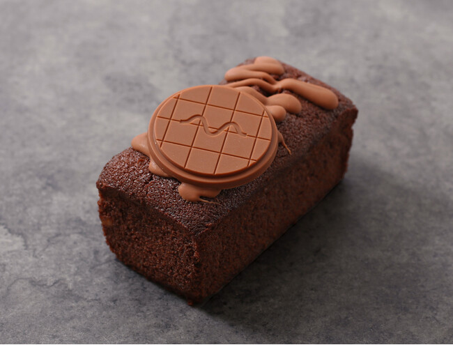 ココアパウダーとアーモンドプードルを混ぜ込んだ生地に、オリジナルミルクチョコレートをバランスよく合わせ、オレンジピールを練りこんで焼き上げました。オレンジピールは真空調理をすることで、グランマニエシロップが浸み込み、柔らかくジューシーな仕上がりに。催事限定・初登場となる、しっとりと香り高い大人のケークをぜひご堪能ください。
