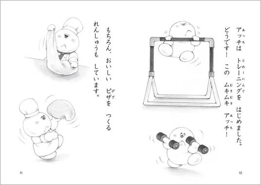 おばけのアッチは、レストランのコックさん。トコトコ町で開かれるピザコンクールに出ることになりました。体をきたえて、おいしいピザ作りを研究します。