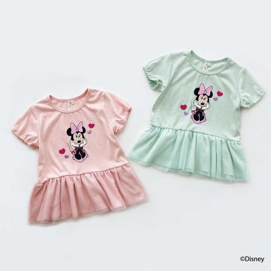 キッズブランド「Samansa Mos2 Lagom」は、カラフルな色使いで「ミッキーマウス」と仲間たちをプリントした7分袖Tシャツ、チュール素材やハートの刺繍でキュートに仕上げた「ミニーマウス」のTシャツなどを取り揃えております。