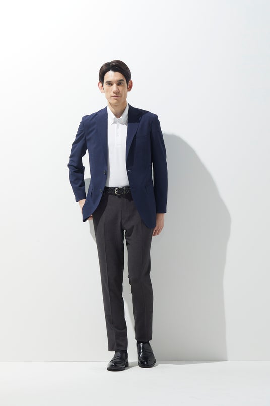 ラペル部分の立体感で「きちんと感」を演出しつつ、背中や肩の副資材を省くことで高通気性・軽い着心地を実現。夏も快適にお召しいただけます。