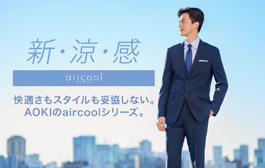 昨今の日本の夏は気温も湿度も高く、「酷暑」といわれる厳しい季節です。AOKIでは、日本の暑い夏もお客様が快適にお過ごしいただけるような、通気性に優れたアイテムを「エアクール(R)シリーズ」として2023年に発売。厳しい暑さが予測される今年の夏に向け、シリーズアイテムを拡充し、展開いたします。