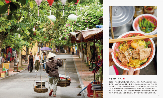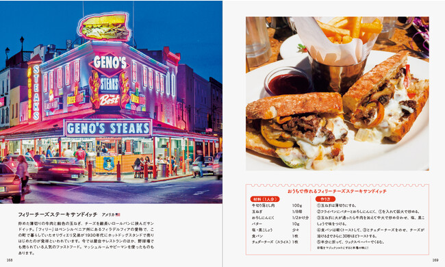 地元の人に混ざって食事することは、旅の楽しみのひとつ。アジアの活気ある屋台や、ヨーロッパの街角にあるスタンド、アメリカのファストフード店などで気軽に食べられるグルメを、人々の暮らしが垣間見える街の写真とともに127種紹介します。おうちで作れるレシピ付き。