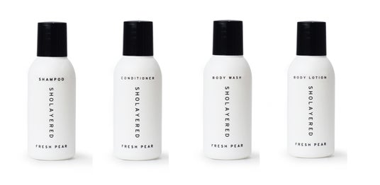 SHOLAYEREDバスアメニティギフト:シャンプー、コンディショナー、ボディーウォッシュ、ボディーローション各30mL