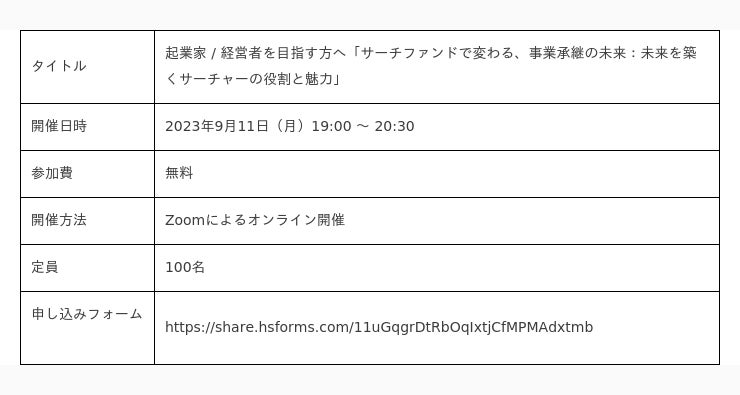 サーチファンド設立に伴い、サーチャー募集説明会を開催します。