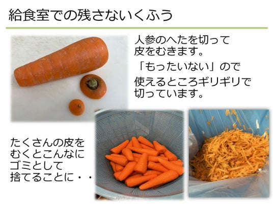 実際に参加した子どもたちからは「(日本で生じる年間のフードロス量が)25mプールが約1万5千個分なんてすごい」「(今日食べた野菜スープも)にんじんを、使えるところぎりぎりまで切る工夫をしてるなんて知らなかった」という声があがりました。