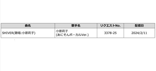 1.通信カラオケDAMに小原莉子が歌う「SHIVER」を、あにそんボーカル本人出演映像として配信。*1【2024年2月11日(日)より】