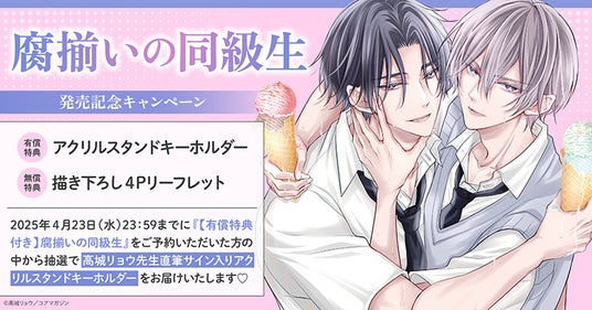 株式会社TORICO(本社:東京都千代田区、代表取締役社長:安藤拓郎)が運営するホーリンラブブックスにて、高城リョウ先生『腐揃いの同級生』発売記念キャンペーンを開催いたします。