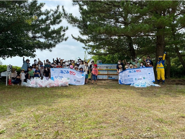 CHANGE FOR THE BLUE鹿児島実行委員会は、2022年7月24日(日)に、いつでも誰でも漂着した海洋ごみを拾うことのできる「拾い箱」の設置と、それを記念したキックオフ清掃活動を、県内設置“第6弾”と題して、喜入町大丸海岸にて開催いたしました。