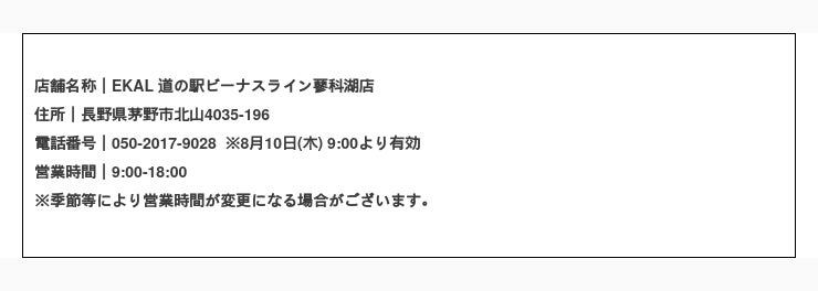 この度、道の駅「ビーナスライン蓼科湖」沿いにEKAL SHOPがOPENいたします。