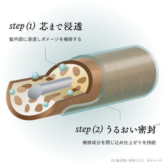 ・ヘマチン*¹(内部補修):髪を包むように密着し、ダメージを内側まで補修。