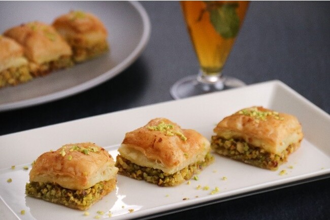 最近話題のトルコの伝統的な焼き菓子「バクラヴァ」をご存じですか?ピスタチオやクルミをパイ生地で挟み、たっぷりの溶かしバターを塗って焼いた後にシロップを染み込ませて仕上げる、濃密な甘さのスイーツです。今回はご家庭でも作りやすいよう、冷凍パイシートを使って作ります。流行りに乗ってバクラヴァの魅力にハマってみませんか?
