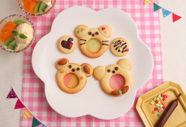 はじめてのお菓子作りにピッタリ!溶けたキャンディがキラキラ透けるステンドグラスクッキーに挑戦してみませんか?どんな動物のお絵描きをするかワクワクしながら、楽しくクッキー作り!手作りのミニパフェを食べて焼き上がりを待ちましょう。