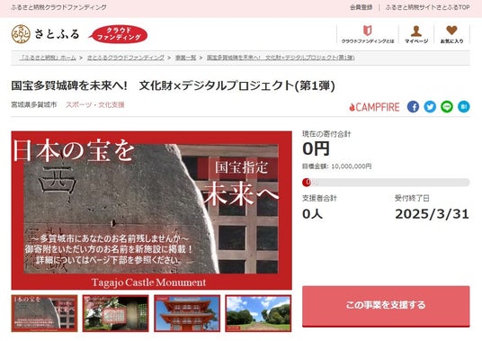 宮城県多賀城市とふるさと納税ポータルサイト「さとふる」を運営する株式会社さとふる(本社:東京都中央区、代表取締役社長 兼 CEO:藤井 宏明)は、「さとふるクラウドファンディング」にて、「国宝多賀城碑を未来へ! 文化財×デジタルプロジェクト(第1弾)」の寄付受け付けを2024年10月18日より開始します。