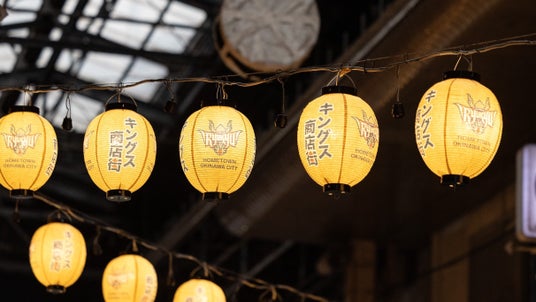 「キングスを応援したい!」 「沖縄市をもっと盛り上げたい!」と結成していただいた「キングス商店街」の皆さまには、沖縄アリーナ開業時より、様々なイベントや優勝パレードなどでもキングスを盛り上げていただきました。このちょうちんが商店街全体を明るく照らし、「キングス商店街」が地域の方々、そしてキングスファンの皆さまにとって、より親しみやすく、多くの方が集う場所となり、沖縄市がますます魅力的な街になることを願っています。