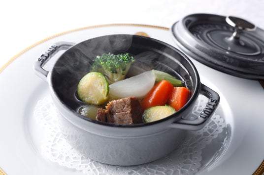 冬の味覚の鮟鱇、牡蠣の他、海の幸をふんだんに使った贅沢なブイヤベースをキャセロールでアツアツに仕上げました。濃厚で奥深い魚介の旨味をお楽しみください。