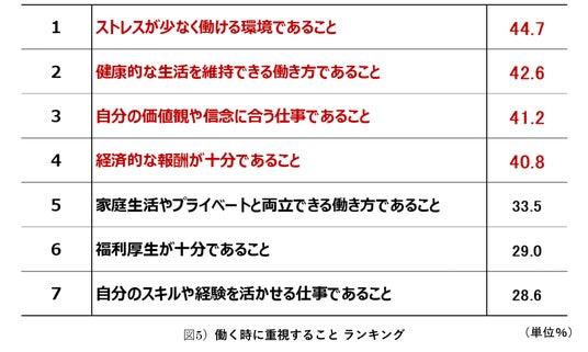 働く時に重視するのは「価値観に合い、ストレスなく、健康的な生活を維持」できること