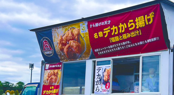 揚げたてから揚げとテリー伊藤こだわりの玉子焼き「から揚げの天才」は、この度JRA日本中央競馬会主催、フォーリンデブはっしー企画の東京競馬場グルメイベント「肉バルTOKYO」に2023 年 5 月 21 日(土)~ 5 月 28 日(日)の各土・日4日間、キッチンカーにて出店しております。5月21日(日)の東京競馬G1オークス開催時には500食を超えるデカから揚げの販売となり、大盛況となりました。次回は5月27日(土)と5月28日(日)の競馬の祭典、日本ダービー時に出店を予定しております。「から揚げの天才」キッチンカーは、イベントや観光地からの出店の要請も多く頂いており、今後も積極的に出店を考えております。