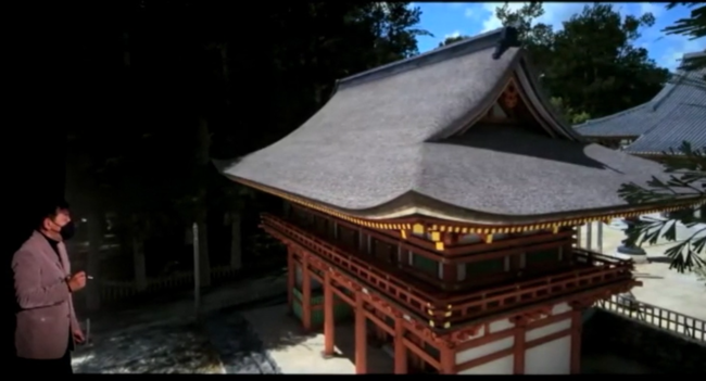 空海の教えと高野山文化の導入体験として、高野山に開設された高野山デジタルミュージアム(※1)内のVRシアターで、VRコンテンツ「高野山 壇上伽藍 ~地上の曼荼羅~」を鑑賞します。また、僧侶や宮大工など現地で活躍する専門家がVR映像をコントローラで操作しながら解説、通常の座学では難解な高野山の理念を視覚や聴覚を通して体感的に学ぶことで、参加者から深い共感と理解を引き出します。
