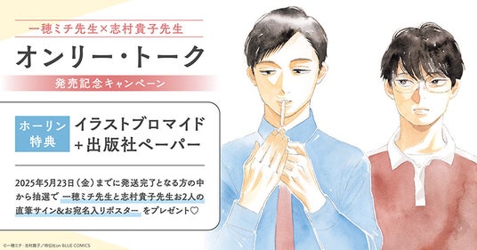 株式会社TORICO(本社:東京都千代田区、代表取締役社長:安藤拓郎)が運営するホーリンラブブックスにて、一穂ミチ先生×志村貴子先生『オンリー・トーク』発売記念キャンペーンを開催いたします。
