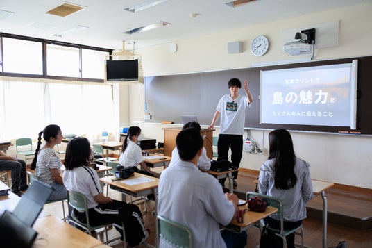 教室で島の魅力を伝えることについて話すゆ~とびさん