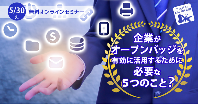 「企業がオープンバッジを有効に活用するために必要な5つのこと?」◆開催日時 2023年4月27日(木)15:00-15:50 2023年5月30日(火)15:00-15:50◆プログラム ・オープンバッジとスキルマネジメント ・オープンバッジを有効に活用する5つのこと ・企業の人材戦略を支援するスキルマネジメントの役割 ・活用事例:KnowledgeDeliverSkill+のデモンストレーション◆詳細・お申込み 2023年4月27日(木) https://www.digital-knowledge.co.jp/archives/31674/?pr 2023年5月30日(火) https://www.digital-knowledge.co.jp/archives/32012/?pr