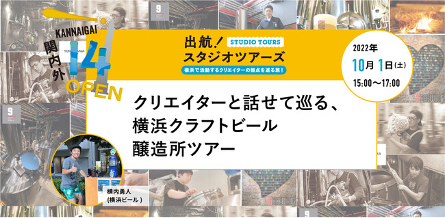 関内外OPEN!は、横浜・関内外エリアを中心に活動するクリエイターのネットワークから生まれる、横浜らしい活動を発信するイベントです。開催14回目となる今回は《出航!スタジオツアーズ》をテーマに、横浜・関内外エリアのキーマンとなるクリエイターがコンダクターとなり、アトリエや拠点などを紹介する“スタジオツアー”を開催します。