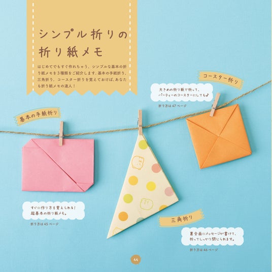 本書の巻末にあるオリジナルのペーパー。折り線のとおりに折るだけで、とってもかわいい折り紙メモが作れちゃう!