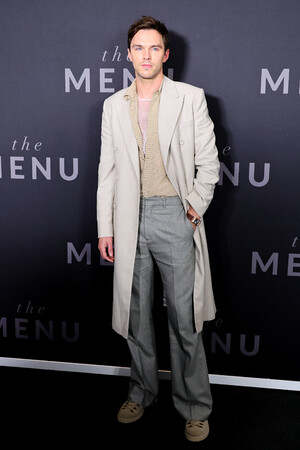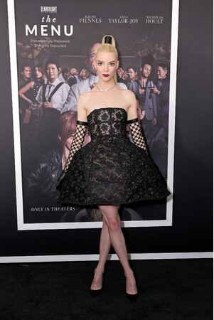 11月14日にロサンゼルスで開催された、映画《ザ・メニュー》のプレミアに登場した、アニャ・テイラー=ジョイとニコラス・ホルト。