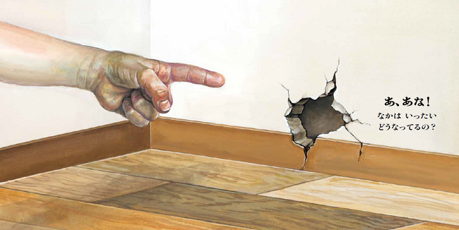 まるで実在するかのようなリアルな画風に思わず引き込まれる絵本『あ、あな!』。作者は、気鋭のボディペイントアーティストとして国内外で活躍しているチョーヒカルさん。『じゃない!』(フレーベル館)や『まるごとうちゅうカレー』(PHP研究所)など唯一無二の世界観で描かれる絵本も大人気です。