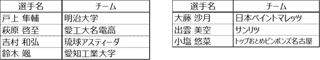 ※男子選考ポイント2位の戸上隼輔選手は、Tリーグ登録選手でない為、5位の田中佑汰選手