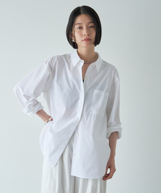 仕立てにこだわり、さりげないRの刺繍がポイントのシャツ