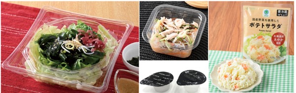 このたびはその一環として、2023年4月から順次、関東・甲信・東海・北陸・関西地区の「チョレギサラダ」および2023年6月6日(火)から順次東北地区の「ちょいデリシリーズ」のふたをトップシールに変更することに加え、2023年6月6日(火)から順次「パウチ惣菜のサラダ」5種類の包材フィルムの厚さ・サイズを変更します。