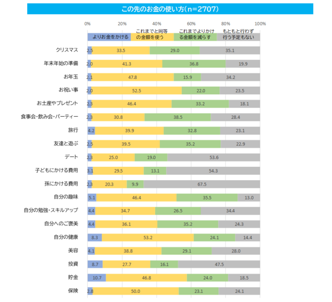 自分の健康とお祝い事にはこれまでと同等の金額を使う