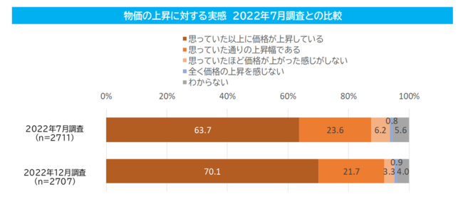 2022年7月調査よりも想定以上の値上げを実感する人が増加