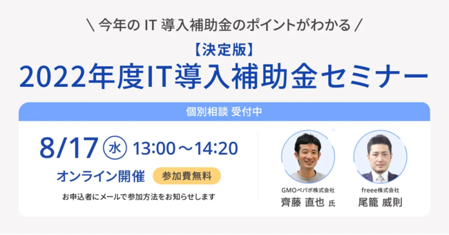 お申し込み窓口:https://go.freee.co.jp/IT_seminar_20220817.html